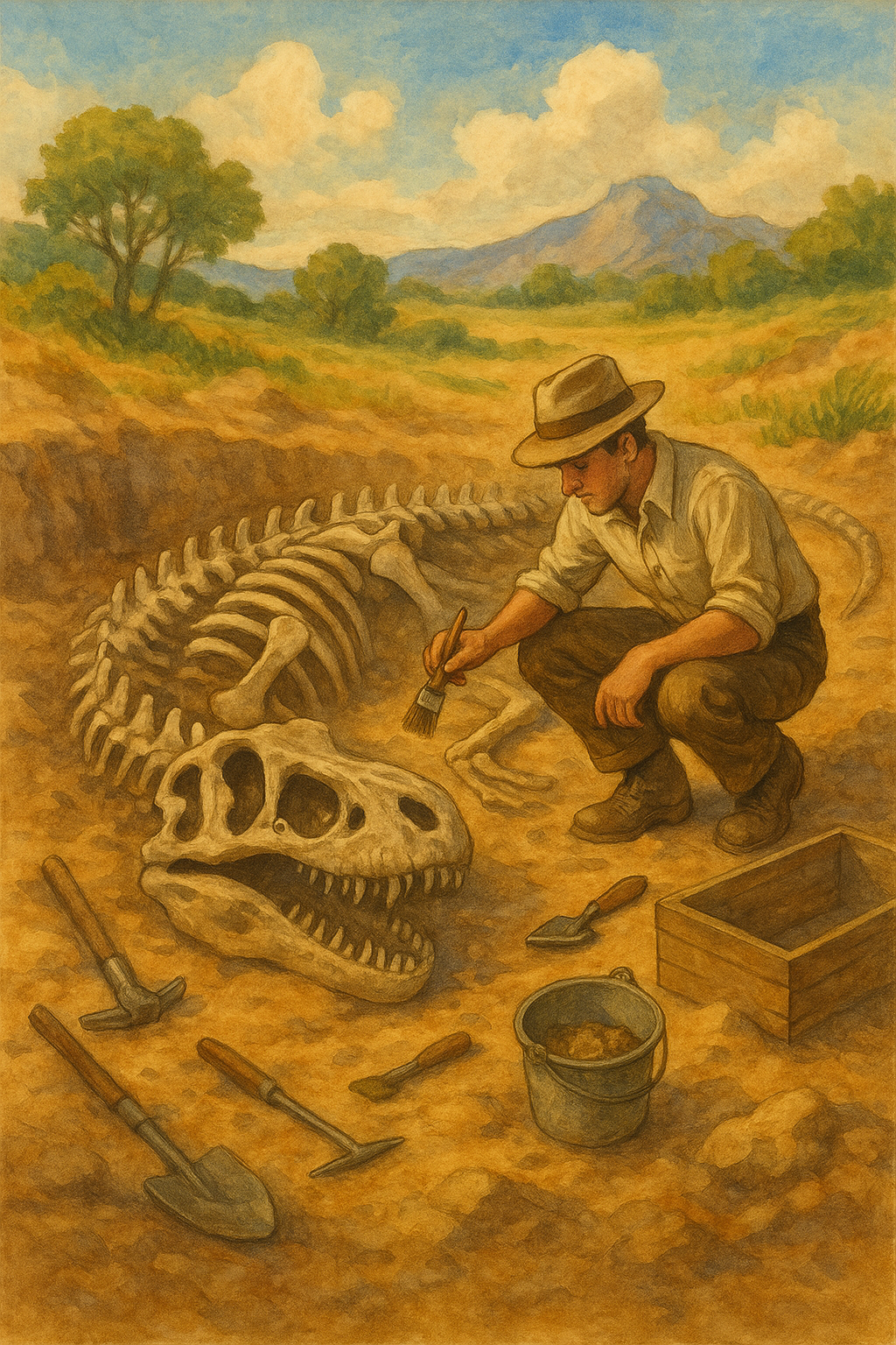 - Science Explanation: Discuss how palaeontologists carefully uncover fossils and what they can learn from the bones (size, diet, etc.). Explain the process of fossilization—how organic material is replaced by minerals over millions of years.